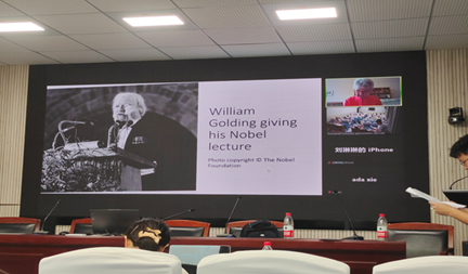 (通讯员:贾新旺,李卓)2022年6月13日,诺贝尔文学奖获得者威廉·戈尔丁爵士之女、牛津大学英语文学硕士、英国作家、资深文学编辑朱迪·戈尔丁·卡弗(Judy Golding Carver)夫人应我院之邀,通过视频会议线上平台在我院二楼会议室做了一场题为“威廉·戈尔丁和他的时代”(William Golding: the novelist in his time)的专题讲座。