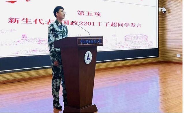 新生代表国政2201班王子超号召大家利用四年大学生活不断完善自我,将所学知识运用于实践,成为有理想、有担当的新时代青年。