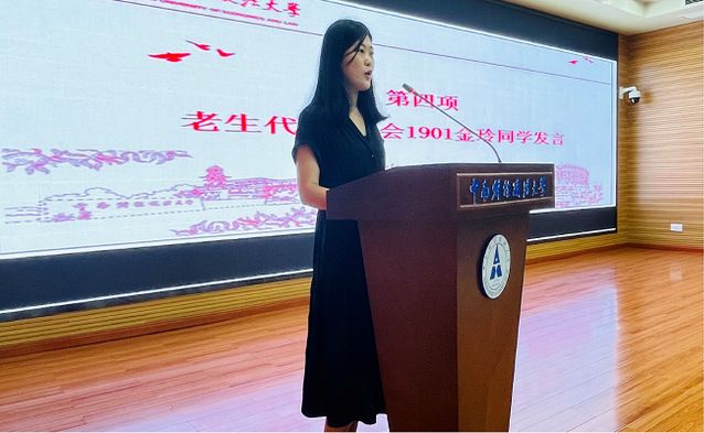 老生代表社会学1901班金玲建议新生们要保持自律,将自己的所学内化为一种生活方式、一种责任使命,同时还要积极参加各项科研活动和社团活动,让自己的大学生活变得多姿多彩。