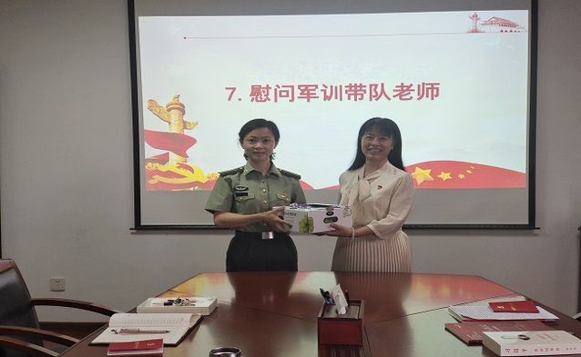 专题片观看结束后,院党委书记刘琳琳代表学院党政领导对徐江、汤彪两位军训带队干部进行了慰问,刘琳琳同志勉励两位同志发扬艰苦奋斗的精神,克服高温考验,圆满完成本次军训任务。