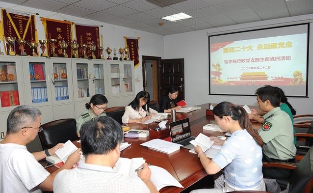 9月22日下午,哲学院行政党支部在文沛楼319会议室组织开展9月份主题党日活动,支部全体党员参加会议,支部书记陈春英主持学习活动。