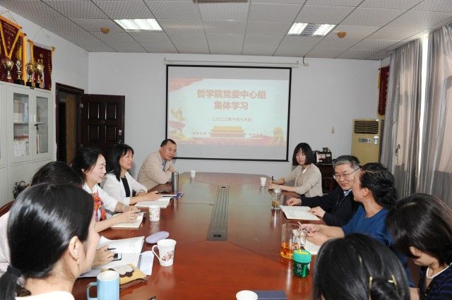 党的二十大开幕会直播结束后,学院党委召开了理论学习中心组(扩大)学习。大家对党的二十大报告进行了热烈讨论,结合学校召开的学习宣传研究阐释党的二十大专题工作部署会精神,结合学院学科建设、自己的研究领域对中国式现代化、习近平生态文明思想、总体国家安全观、社会治理共同体等内容进行了讨论,对下一步的学习宣传研究阐释工作进行了部署。