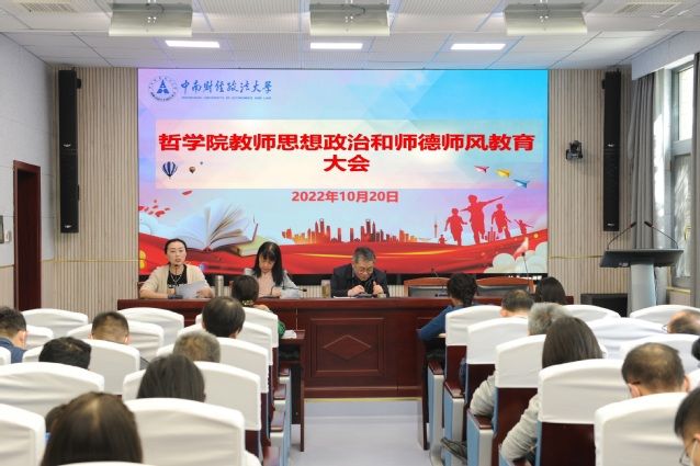 为提升学院教师思想政治素质和师德师风水平,哲学院于10月20日下午召开教师思想政治和师德师风专题教育大会,全院教职工参会。会议由学院党委书记刘琳琳主持。