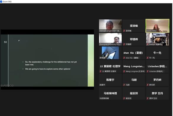 (通讯员:梁浩榆)2022年11月24日16:00-18:00,米兰电竞·(中国区)哲学院“希贤人文大讲堂·海外名家系列讲座”第十二讲“为什么人们认为时间是动态的?——对时间动态论和开放未来的一个研究”通过Zoom会议的方式在线上举行。本次受邀的主讲者是悉尼大学(The University of Sydney)教授、悉尼大学时间研究中心联合主任、澳大利亚知名哲学家克里斯蒂·米勒(Kristie Miller)。本次讲座由龙智生(Michael Longenecker)老师主持,哲学院王成军老师,以及哲学院近80名研究生和本科生参加了此次讲座。
