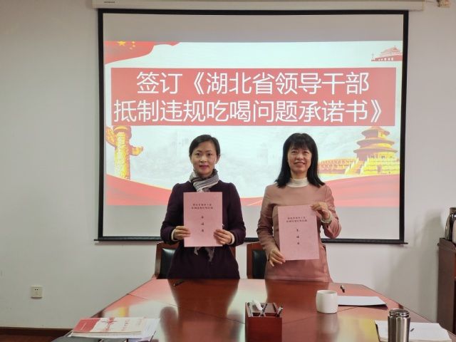 会议最后,刘琳琳宣读了《湖北省领导干部抵制违规吃喝问题承诺书》相关内容,继续动员党员们要洁身自好,抵制奢靡之风和贪腐之风。刘琳琳、徐江在学院行政支部全体党员的见证下,签订了《湖北省领导干部抵制违规吃喝问题承诺书》,以表抵制违规吃喝的决心。