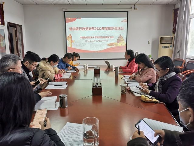 (通讯员 汤彪)2月21日,哲学院行政党支部召开2022年度组织生活会,支部全体党员参会。院党委书记刘琳琳、院党委副书记徐江以党员身份参加,徐江作为联系行政支部的分管领导,指导了此次生活会。本次生活会由支部书记陈春英主持。