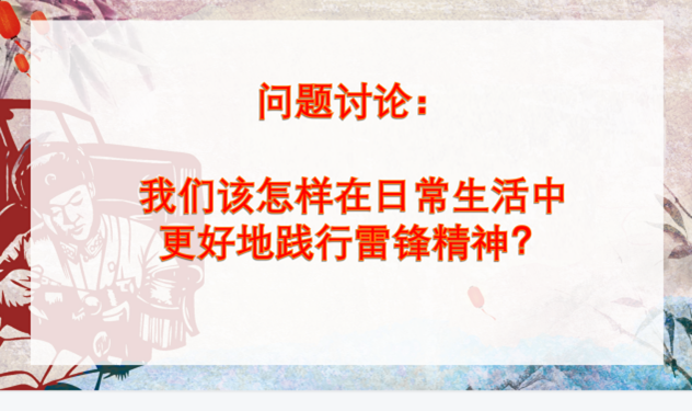 最后,团支部展开了互动讨论。班级优秀志愿者代表李嫚分享了自己志愿服务的经历,同学们也各抒己见,发表了自己关于如何在日常生活中更好地践行雷锋精神的看法。