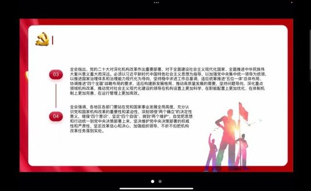 首先,薛智宝同学领读党的二十届二中全会报告,并对与青年发展相关的内容作出解读。作为积极接触新思想,时刻听党话跟党走的优秀青年,我们要更加紧密地团结在以习近平同志为核心的党中央周围,这给青年学子提出了四点宝贵的品质:自信自强、守正创新,锐意进取、顽强拼搏;扎实推进中国式现代化建设,坚定信心和决心,努力完成学习目标,为实现中国式现代化矢志不渝,共同奋斗。
