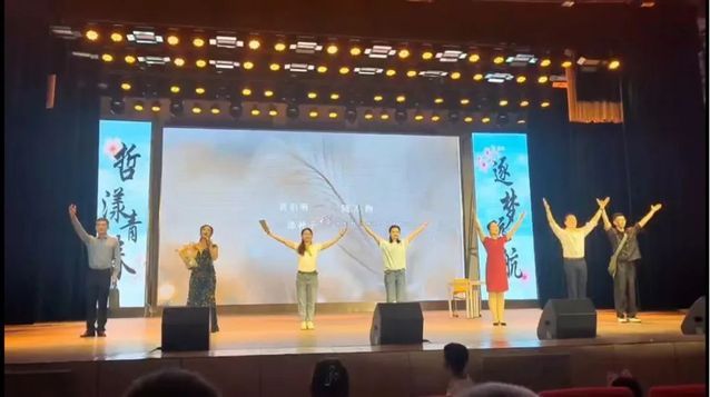 研究生黄保凯、何姜丽、王龙年、罗席雯的诗朗诵《如愿》,让第一篇的“朝花”在一句句诗中,被拾掇成心中情谊。