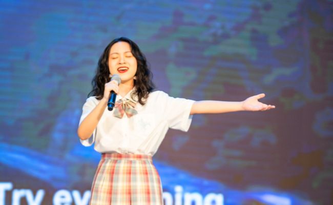 篇首由付周荃独唱英文歌曲《TRY EVERYTHING》,美妙的嗓音让全场送出热烈掌声。