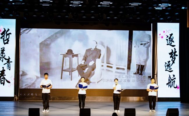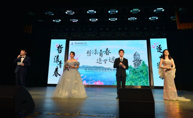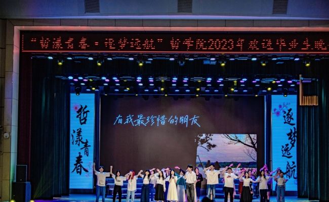 (学生记者:陈铭豪、盛婕;摄像:吴楠、朱玉凝)4月20日晚7点,伴随悦耳旋律,一场别开生面的欢送毕业生晚会拉开帷幕。此次晚会以“哲漾青春,逐梦远航”为主题,于南湖会堂隆重举行。此次晚会邀请了就业指导中心副主任詹万明,校团委副书记夏东伟现场观看。学院全体当中负责人、全院师生共同到场观看。