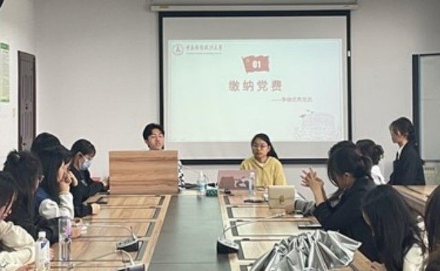 主题党课后,支部党员集中交纳四月份党费,张念同志带领大家重温入党誓词。支部第一学习小组的王雅玄、黄建鹏、王晓阳、黄珂冉、俄力哈尔·巴合提奴尔五位同志领读党的二十大集中审议通过的《中国共产党章程(修正案)》,并对“党章-总纲”部分的修订之处作出说明,加深与会同志对党章的前提和总则的认识。