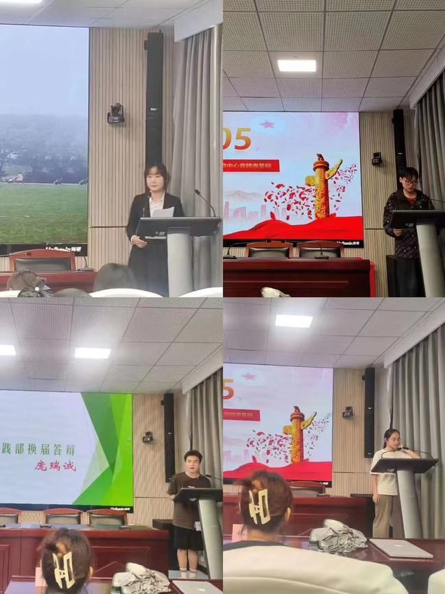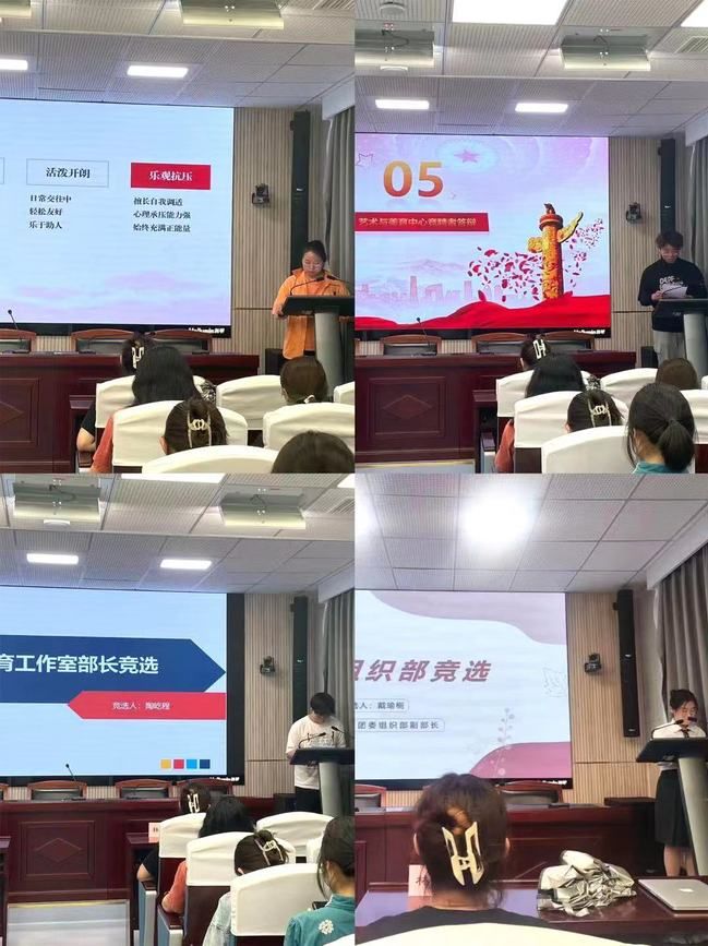 大会在激昂的团歌声中拉开序幕。主持人介绍了各部门的展示顺序,按照创业实践部、社管管理部、团委组织部、艺术与美育中心以及团委副书记的顺序进行答辩。答辩的竞聘者们充满热情,总结了自己一年在部门内的工作体会以及对自己想要留部的部门的工作展望。
