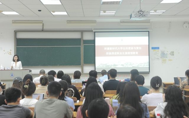 (学生通讯员 姜钰晗 张瑶瑶)为推进学习贯彻习近平新时代中国特色社会主义思想主题教育走深走实,增强毕业生的就业竞争力,引导同学们树立正确的就业观念,6月2日上午,教务部联合就业指导服务中心开展“同上一门思政课”活动,就业指导服务中心主任温习为哲学院学生讲授《把握新时代大学生的使命与责任,积极推进职业生涯规划教育》思政课。就业指导服务中心副主任詹万明及中心全体工作人员,哲学院党委书记刘琳琳、副院长万健琳、党委副书记徐江及2024届全体本科毕业生、研究生毕业生参加。哲学院党委副书记徐江主持学习活动。