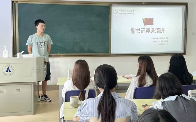 随后,党支部开展了支部副书记和宣传委员的换届选举,候选人上台进行竞选演讲,经过支部党员无记名投票后选举出新的支部副书记张晗龙与宣传委员谭湘君。