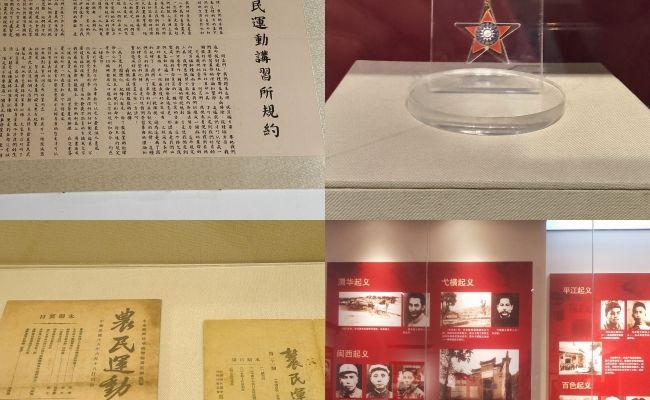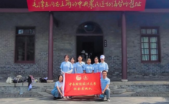实践队首先参观了武汉革命博物馆农讲所。农讲所位于武昌红巷13号,是第一次国共合作时期毛泽东同志倡议创办并主持的一所培养全国农民运动干部的学校。实践队先是走进了农讲所教务处,墙上的一块展板映入眼帘,上面用正楷写着《中央农民运动讲习所规约》全文,它是当时农讲所师生们经过认真讨论共同制定的。沿着中轴线继续向北走,大家来到了农讲所学生上课的大教室,在这里汇聚了来自全国17个省的800多名学员。随后,队员们参观了大操场、学员宿舍、膳堂等展堂和位于2楼的《探索与奠基——武昌中央农民运动讲习所历史陈列》展厅,重温革命光荣历史,追忆革命先辈足迹。