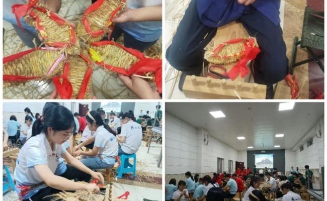 晚上7点,实践队成员共同参与了“学编红军草鞋”体验教学,在老师的指导下,成员们聆听红军的革命故事,积极动手编制红军草鞋,在劳动中感受传承红军艰苦奋斗的革命精神。