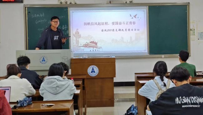 (学生通讯员:朱家辉/摄影:薛智宝)扬帆信风起征程,爱国奋斗正青春。国政2101团支部于2023年9月21日晚在文澜102教室举办了九月团日暨推普周专题活动,支部全体同学参加了此次活动,活动由组织委员王璞同学主持。
