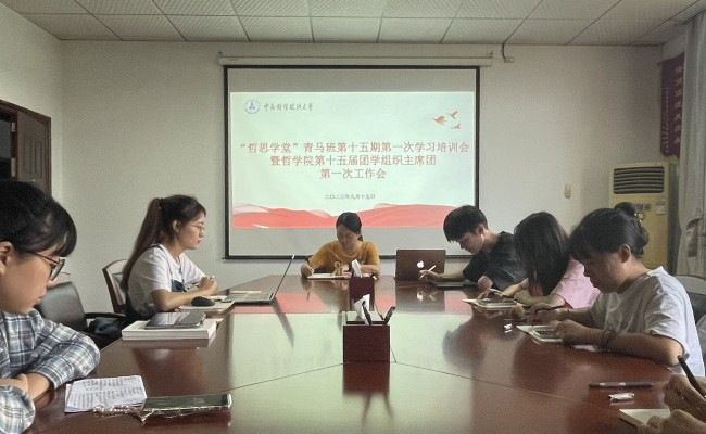 (学生记者:王和和/摄影:李嫚)9月15日上午,“哲思学堂”青马班第十五期第一次学习培训会暨哲学院第十五届团学组织主席团第一次工作会在文沛楼319召开。团委书记陈意萍老师及主席团全体成员参与了本次会议。