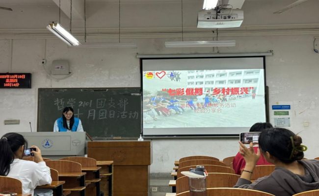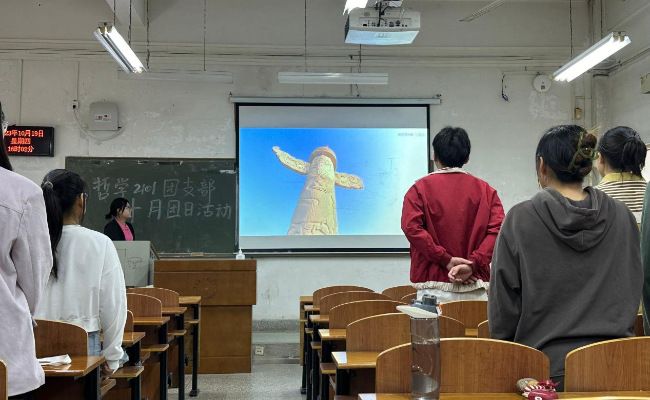 (学生通讯员:郑宇/摄影:杨俊岚)为深入学习贯彻习近平总书记的实践观,坚持理论联系实际、把握问题导向,深度发扬扎根基层的理念,2023年10月19日晚,哲学2101团支部在文澜209教室举办了“扎根基层进社区,激扬青春践初心”志愿活动经验分享暨十月主题团日活动,支部全体同学参加了本次活动,活动由组织委员白力羽同学主持。