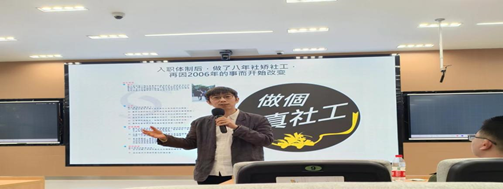 (通讯员 廖雪瑶)2023年10月22日10:00-11:30,香港特别行政区政府社会福利署社会工作主任梁建雄,应邀于文波楼112进行主题为“真人图书馆——从资深社工的生涯发展看社工应有的价值观和态度”的讲座。