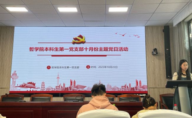 (学生通讯员:闫随心/摄影:田志璐)1022日,哲学院本科生第一党支部在文沛楼二楼会议室开展了“深入推进巡视巡察整改工作,提升组织体系建设整体效能”主题党日活动。支部书记陈意萍、全体党员、发展对象及入党积极分子学习小组成员参加会议。本次活动由李嫚同志主持。
