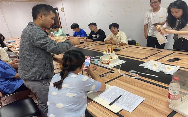 团日活动正式开始前,桂典同学告知了同学们辅导员调整的事宜,后期将由陈意萍老师接任汤彪老师,担任国政2201班辅导员。汤彪老师对本人过去一年多的辅导员工作进行了总结,对班级每位同学的进步与成长感到很欣慰。汤老师鼓励同学们,坚定理想信念,设立远大目标,坚持奋斗追求。陈意萍老师对汤老师一年来的付出表示了感谢,并对同学们提出了三点希望,希望同学之间、同学与老师之间能多交流;希望同学们能多思考,多提问;希望能与同学们共同成长,共同进步。为感谢汤老师、欢迎陈老师,支部为两位老师准备了惊喜蛋糕。