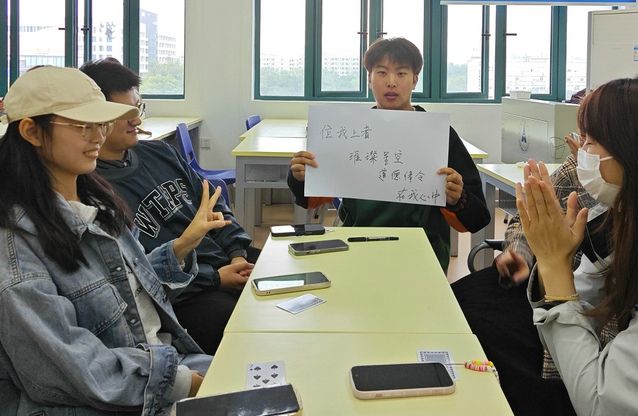 接下来,主持人以扑克牌分组的方式将班级成员分为四组,并鼓励每个小组进行赋能自我介绍。这一环节不仅促进了同学们更深入地了解彼此,还增强了大家的自信心和自我认知。