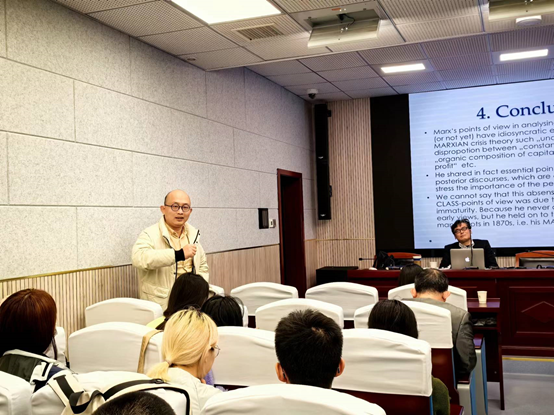 (通讯员:万雯)2023年11月22日15:00,我院于文沛楼二楼多功能会议室举行了75周年学术校庆·哲学院海外名家系列讲座之“马克思是怎么成为一位经济学家的?”,日本东北大学(Tohoku University)经济学部教授,原经济学部部长,日本知名马克思主义专家和政治经济学家Kenji Mori(守健二)莅临我院讲学。本次讲座由哲学系王成军老师主持,张佳、朱松峰、郭剑仁老师、哲学院各专业近60名研究生和本科生以及来自于武汉大学的盛福刚老师参加了此次讲座。