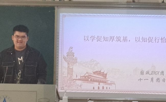(学生通讯员:朱家辉/摄影:朱家辉)为深入学习宣传贯彻党的二十大精神,持续深化团中央“艰苦奋斗强我中华”青年主题文化活动,国政2101团支部于2023年11月22日上午,在文澜102教室举办“以学促知厚筑基,以知促行恰风华”十一月主题团日活动。支部全体同学参加了此次活动,活动由团支部书记薛智宝同学主持。