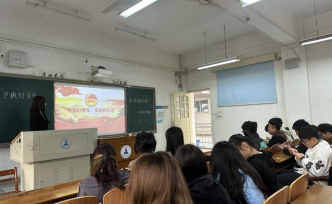 最后,团支书带领同学们欣赏了电影短片《“燃灯校长”张桂梅》,旨在鼓励每位青年要保持对生活的热爱和对知识的渴望,不断提升自我,为未来的挑战做好准备。