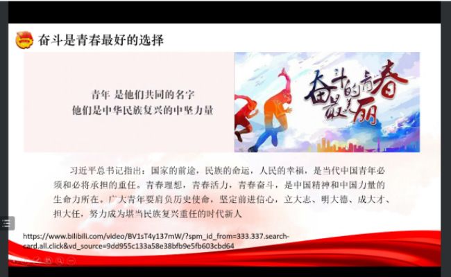 最后,团支书带领团支部成员观看新时代青年奋斗群像视频,引导大家传承奋斗精神,肩负时代使命。