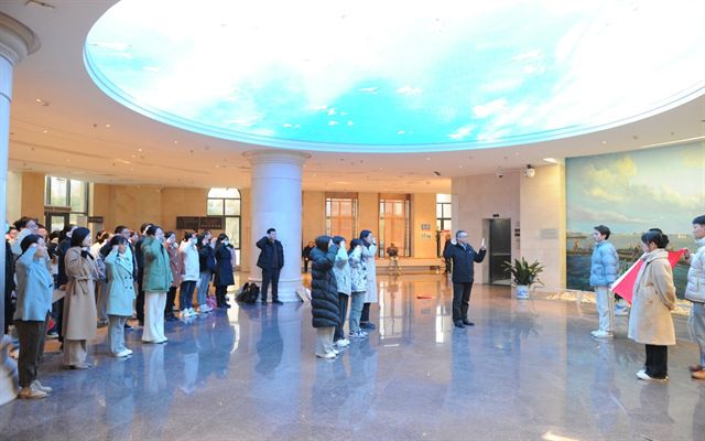培训班还为两院近期新发展的党员举行了入党宣誓仪式,新党员跟随老党员面向党旗作出神圣宣誓,老党员为新党员佩戴党员徽章、赠送《中国共产党章程》。全体党员现场重温入党誓词,永葆党员初心。