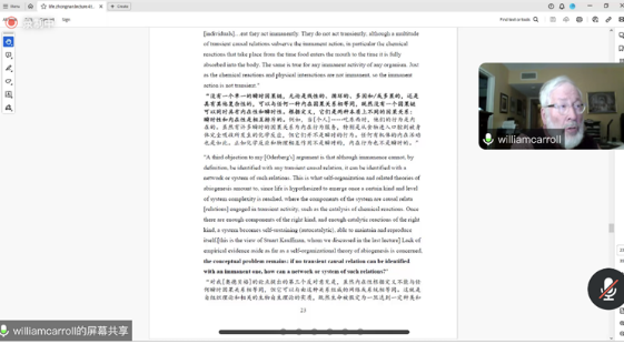 (通讯员 张薇馨)2023年11月21日至30日,国际知名科学史家和中世纪哲学专家、前牛津大学教授、米兰电竞·(中国区)哲学院特聘客座教授威廉·卡洛尔(William E. Carroll)受邀进行了共计四讲的“理解生命及其起源”的系列线上讲座。系列讲座由王成军老师主持,来自复旦大学、北京师范大学、华东师范大学以及哲学院数名学生与部分老师参与了该系列讲座,累计逾200人次。