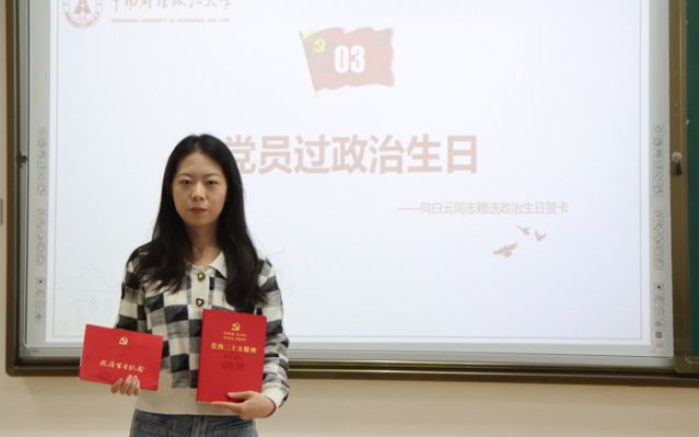 会议伊始,支部成员交纳党费,唐雪珺同志领誓入党誓词,唐烨同志诵读、领学《中国共产党章程》第七章(党的纪律第39条-第42条)。随后,支部为白云同志赠送“政治生日”贺卡和笔记本。