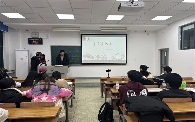 (通讯员:于跃)为深入开展宪法学习宣传教育活动,突出学习宣传习近平法治思想,深入学习宣传宪法、民法典、教育法律法规和未成年人保护、爱国主义教育等相关法律知识,12月4日下午五点,PPE2301班于文泰205教室开展了以“大力弘扬宪法精神,建设社会主义文化”为主题的宪法学习宣传教育活动。本次活动由班长庞一鸣主持。