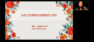 谢倩博士作了题为“社会工作实习的形式与内容”的讲座,详细介绍了美国社会工作实习的几种形式和社会工作实习的主要内容,重点分享了上海纽约大学MSW项目的实习督导研修课程和美国社会工作教育委员会(CSWE)认证机制。