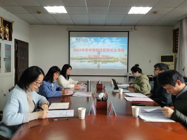 (通讯员 吴林)2023125日上午,哲学院在文沛楼319会议室组织2023年新任职研究生导师培训动员,学院刘琳琳书记、张佳副院长、新任职研究生导师龙智生、叶云、周盼及学院研工办工作人员共同参加,动员会由张佳副院长主持。