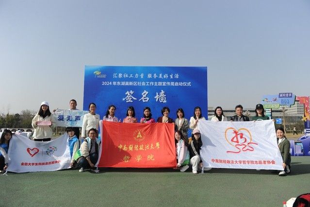 2024年3月19日是第18个世界社会工作日。为弘扬社会工作正能量,营造良好的社会工作发展氛围,扩大社会工作的宣传效应和影响力,3月19日下午,以“汇聚社工力量 服务美好生活”为主题的2024年东湖高新区社工宣传周启动仪式在光谷中央生态大走廊广场举行,哲学院党委书记刘琳琳,院党委副书记徐江,社会学党支部、行政党支部,以及学院志愿者协会科普宣讲团、“爱无声”手语协会、手创协会参与了本次活动。