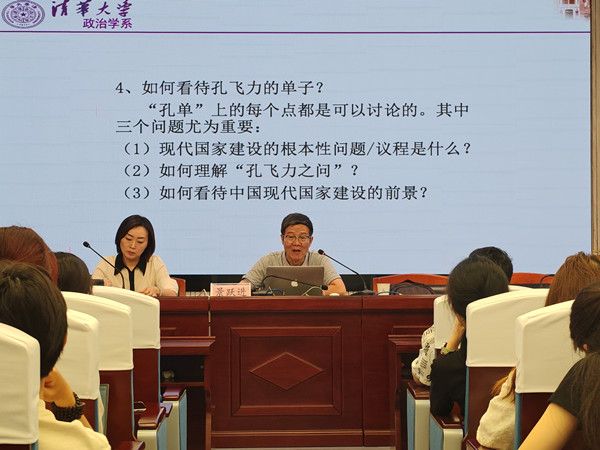 随后,景跃进教授详细分析了美国已故著名学者孔飞力教授的《中国现代国家的起源》一书,并借用“孔飞力之问”提出三个问题并给出自己的见解。第一,中国现代国家建设的根本性问题或议程是什么?他认为孔飞力选择性地“忽视”了“现代中国”的形成问题,以及这个问题对于中国“现代国家”建构的制约性作用;中国现代国家建设的根本性问题或议程是如何保持中国存在的前提下,既能建设成为统一、强大和有效率的国家,又能建设成为一个在宪制建设、公民参与等基本问题上具有现代意义的国家。第二,如何理解“孔飞力之问”?他强调“孔飞力之问”与“李约瑟之问”“韦伯之问”的表述结构是一致的,都是表达的“为什么不能”,这样的表达逻辑是将西方标准转化为具有普遍性的标准然后再用来衡量中国,是值得商榷的。第三,如何看待中国现代国家建设的前景?他指出无论是孔飞力的参与、竞争与控制,还是福山的国家能力、法治和问责,都是从西方现代化经验中提炼出来的概念,值得我们借鉴,但未必要照搬;中国特色社会主义制度的本质特征是中国共产党的领导,这意味着我们需要反思和重构政治现代性的概念。