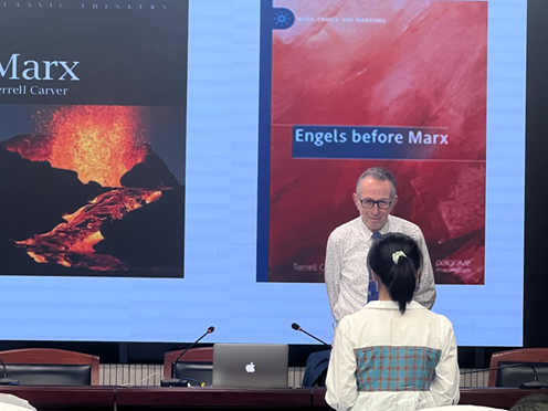 讲座伊始,王成军老师向同学们隆重地介绍了卡弗教授,并对卡弗教授在恩格斯思想研究领域取得的成就由衷赞扬,他鼓励同学们珍惜此次和卡弗教授交流学习的机会。本次讲座在同学们热烈的掌声中开始。