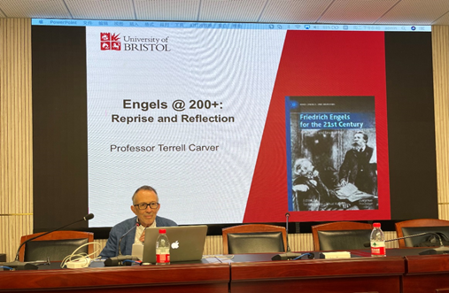 在第一场讲座“200年后的恩格斯:再现与反思”中,卡弗教授立足于恩格斯的早期和晚期的代表性著作,追溯了恩格斯的个人经历和写作风格,向我们呈现了关注现代性的发展及其危害、重视阶级斗争、关心国际政治、关切妇女问题以及创造性地阐释马克思思想的复杂的恩格斯的个人形象。第一,卡弗教授基于恩格斯的《伍珀河谷来信》《英国的状况》《来自兰开夏郡》等文本,指出恩格斯以异于常人的观察力和好奇心,从自我民族志的角度出发,阐释资本主义社会的发展,描绘阶级分层,从侧面论证了恩格斯对马克思主义的贡献。第二,卡弗教授指出,恩格斯的《英国工人阶级状况》对新世界“曼切斯特城”的先导性批判,正确指引了美国社会主义者将反对童工、有害工作条件、残酷剥削和贫民窟住房的斗争加以历史化和正宗化。第三,卡弗教授从《家庭、私有制和国家的起源》出发,指出恩格斯重述了摩尔根的进化理论和结论,并把这本书作为一种历史实践,这就超越了将女性主义视为反对男性压迫的看法,将其视为一项修正错误的当代政治行动。