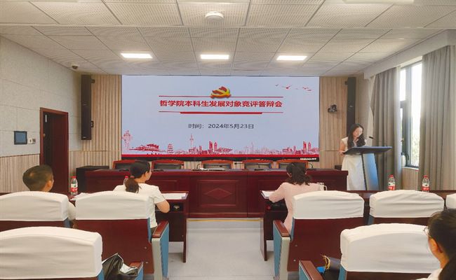(学生通讯员:闫随心/摄影:闫随心)为进一步贯彻落实《中国共产党发展党员工作细则》相关规定,提高党员队伍的整体素质,5月23日,哲学院在文沛楼二楼会议室召开2024年本科生发展对象竞评答辩会。哲学院党委副书记徐江,院学办主任、本科生第二党支部书记毛丹丹,院分团委书记、本科生第一党支部书记陈意萍,院党务秘书、本科生辅导员汤彪出席此次答辩会,学生党员代表以及51名入党积极分子参与会议。活动由王婧巧同志主持。