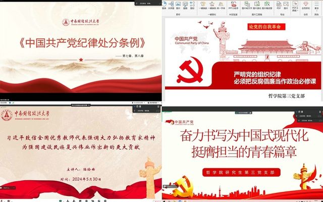 (通讯员孙思宇)5月30日晚,哲学院研究生第三党支部在腾讯会议平台线上开展了“严明组织纪律和廉洁纪律,争做忠诚干净担当的表率”主题党日活动,支部全体党员参加会议。会议由支部书记韦晨依同志主持。