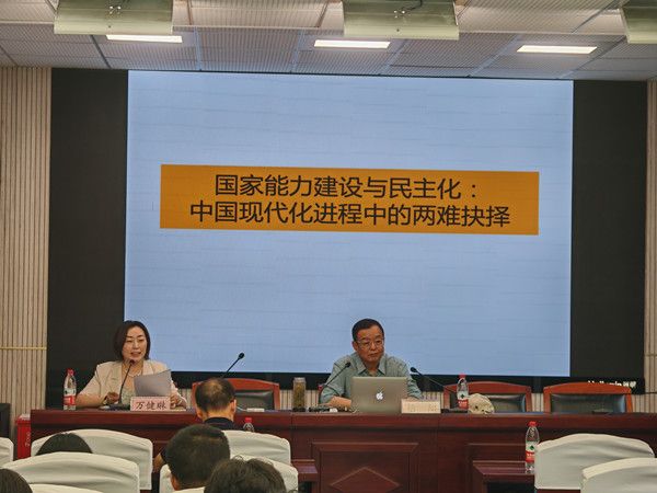 随后,杨阳教授深入探讨了现代国家建构的不同路径,包括弱国家的顺势现代化和强国家的逆势现代化,详细分析了这两种路径的特点,并提出了释放社会自由空间以促进现代经济建立的观点。
