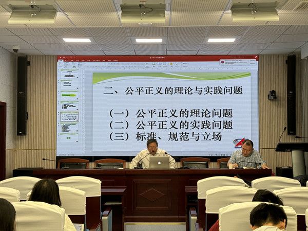 (通讯员 张芷然)2024年5月31日晚上7:30,重庆大学马克思主义学院院长、教授、博士生导师冯颜利应邀于文沛楼二楼会议室讲授“公平正义论”。讲座由哲学院副院长朱松峰教授主持,学院部分老师、博士研究生、硕士研究生和本科生参加了讲座。
