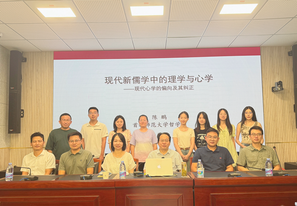 (通讯员、摄影 吕弘扬)2024年9月2日上午9:00,首都师范大学哲学系教授、博士研究生导师陈鹏应邀来我院讲学。本次讲座的主题为“现代新儒学中的理学与心学”,讲座由哲学院叶云副教授主持,哲学院黄敏教授和武汉大学哲学学院谢远笋副教授在与谈环节参与了讨论。学院部分老师、研究生和本科生参加了本次讲座。