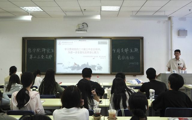 (通讯员 周熹)9月19日下午,哲学院研究生第二党支部、第三党支部在文澴楼515教室和腾讯会议平台同步开展以“学习贯彻党的二十届三中全会精神,为进一步全面深化改革凝心聚力”主题的党日活动。会议由研究生第二党支部副书记梁睿涵同志主持,研办主任、第二党支部书记王路芳,两个支部全体党员及部分入党积极分子参加会议。