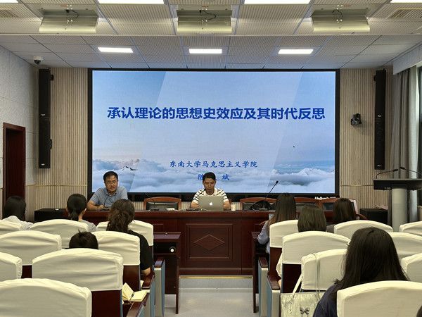 (通讯员余雅轩/摄影卢杰)2024年9月26日上午9:00,东南大学马克思主义学院教授、博士研究生导师陈良斌应邀来我院讲学。本次讲座的主题为“承认理论的思想史效应及其时代反思”,讲座由颜岩教授主持,学院部分老师、研究生和本科生参加了本次讲座。