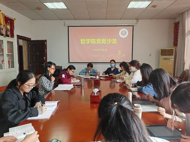 为深入学习贯彻习近平总书记关于党的建设的重要思想,落实全面从严治党政治责任、推进党的组织体系建设、提升党务干部队伍素质和党务工作水平,11月1日,哲学院党委在文沛楼319会议室举办党务沙龙活动。院党委书记刘琳琳,院党委副书记、纪委书记徐江,全院师生党支部书记参会。本次会议由刘琳琳主持。